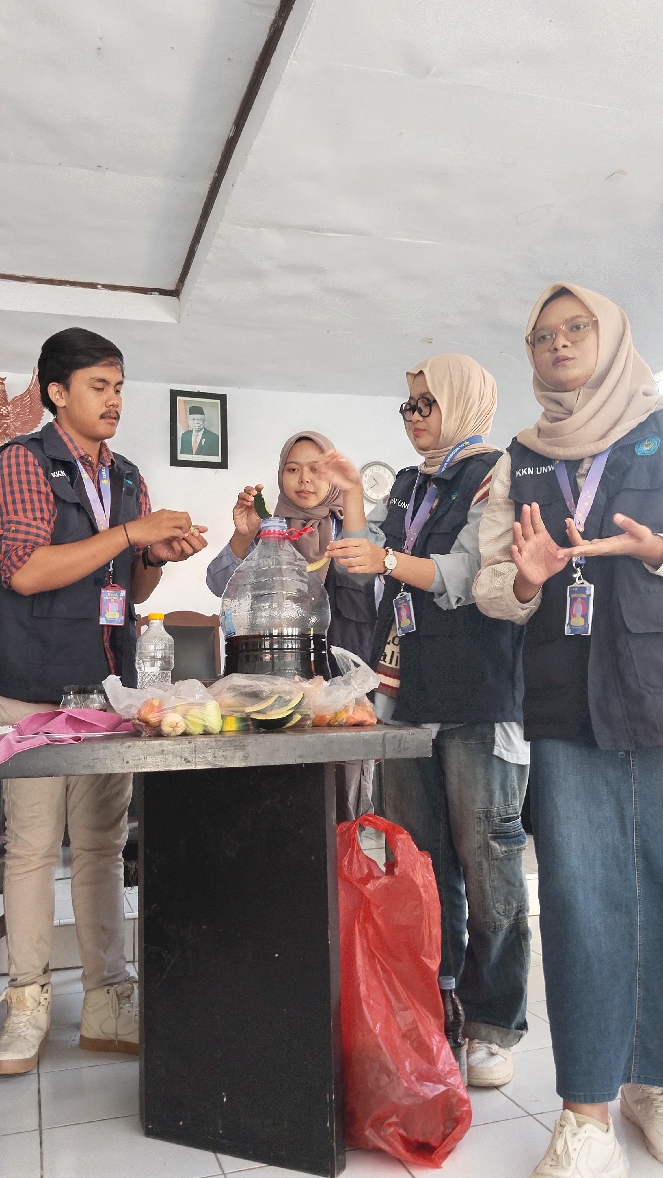 Kelompok KKN-PPM Kelompok 10 Desa Wanguk Kecamatan Anjatan, Bertempat di Balai Desa Wanguk melaksanakan program kerja Fakultas Pertanian Program Studi Agribisnis yaitu dengan melakukan Penyuluhan Pertanian kepada masyarakat tentang “Pemanfaatan Pembuatan Eco Enzym dari Limbah Organik Sebagai Cairan Multifungsi di Desa Wanguk”.